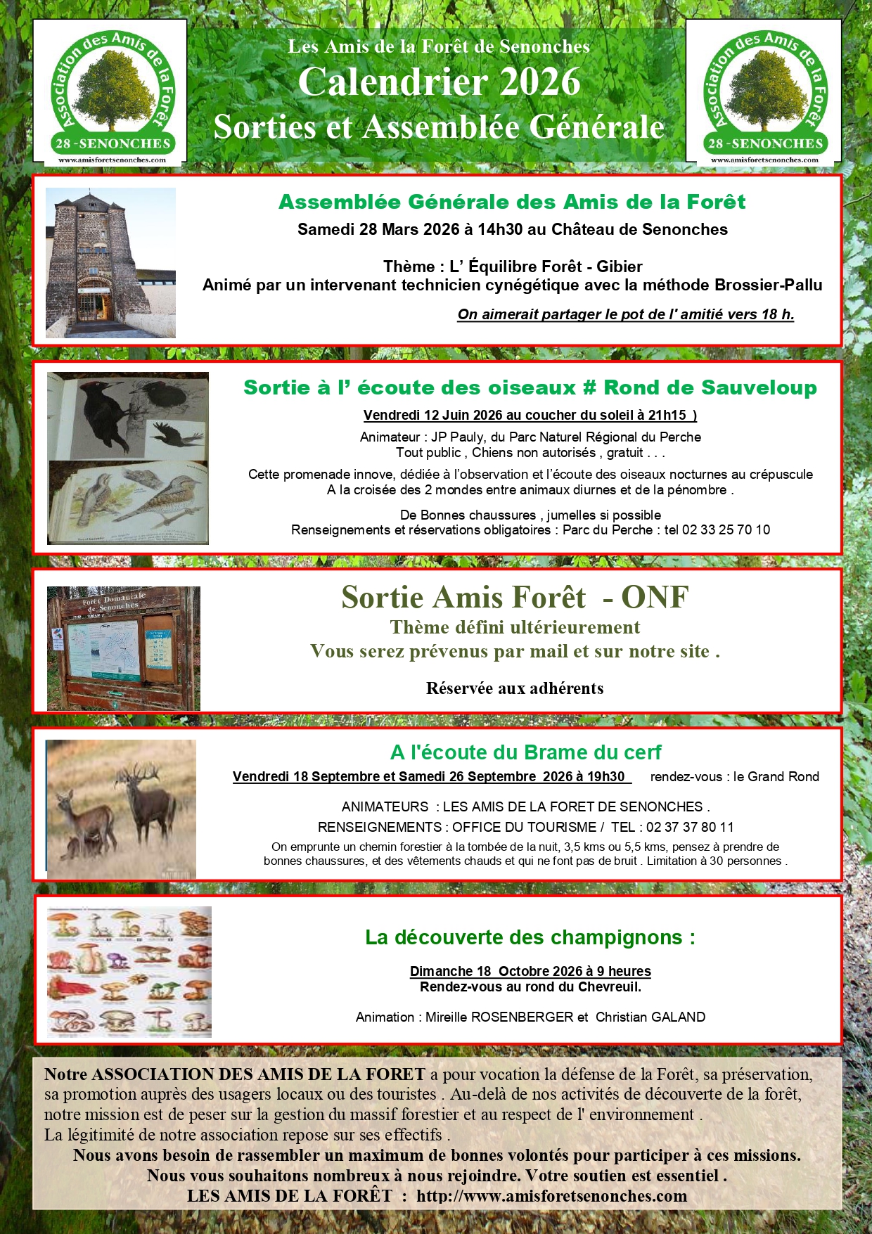 Agenda de l’assemblée générale et des sorties 2026